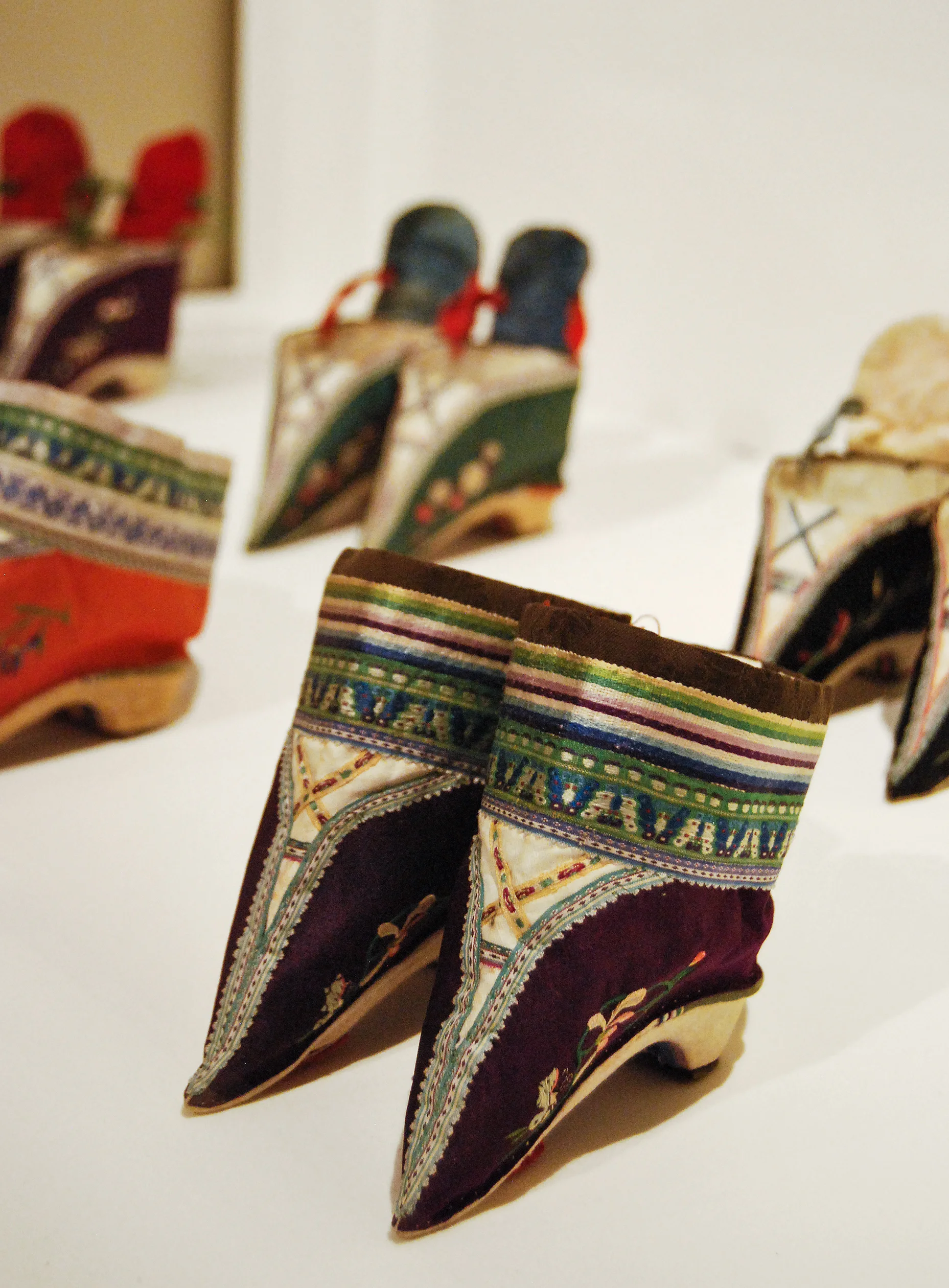 Considering this sentiment, "Shoes: Pleasure and Pain," an extensive exhibition organized by the Victoria and Albert Museum and is currently on view at The Peabody Essex Museum, did not exactly disappoint. At the very least, it featured the legendary Manolo Blahnik patent leather Mary Janes that Ms Bradshaw described in an episode in season 4 of SATC, as "an urban shoe myth."